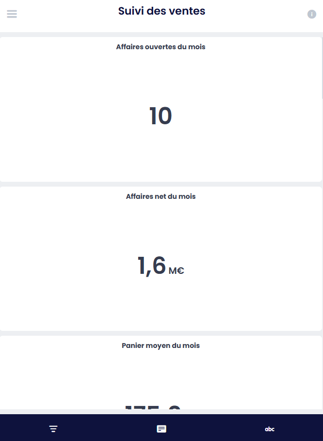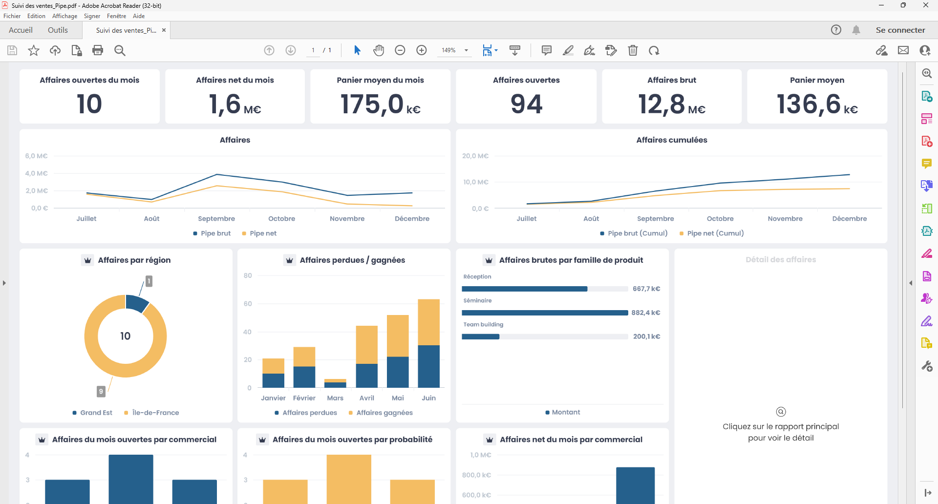 Ouvrez le tableau de bord Suivi des ventes du dossier Commerce.