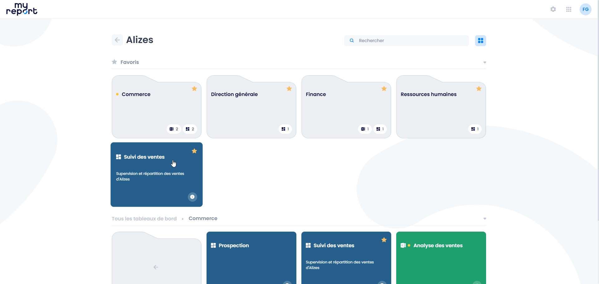 Dans votre projet, vous avez donc une partie Favoris qui apparaît dans laquelle se trouveront tous vos tableaux de bord déclarés en favoris.