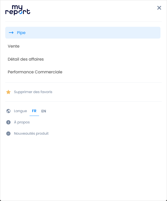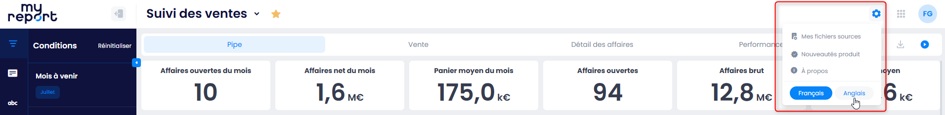 permet de changer la langue de l'interface de MyReport Center en français ou en anglais.