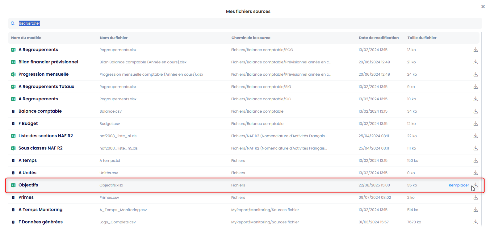 Le droit de télécharger (download) et de remplacer (upload), ou non, les fichiers sources est défini dans MyReport Administrator !