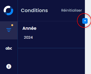 - Le volet des conditions, à gauche du tableau de bord, peut être affiché ou masqué :