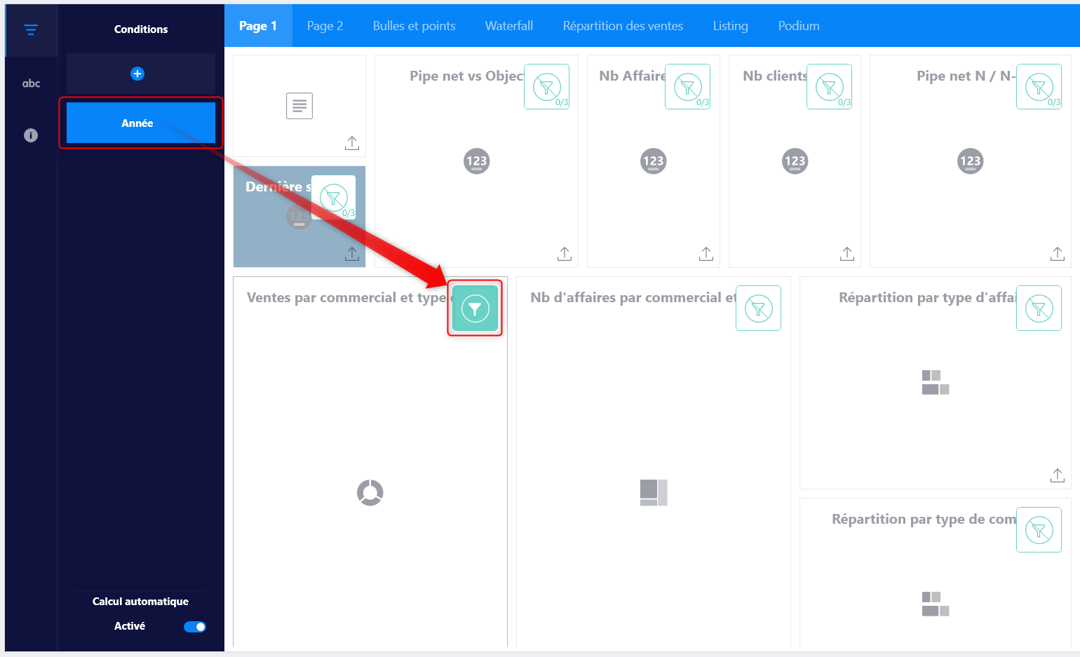 - Sélectionner la condition et cliquer sur le bouton en forme d'entonnoir d'un des rapports de la page :