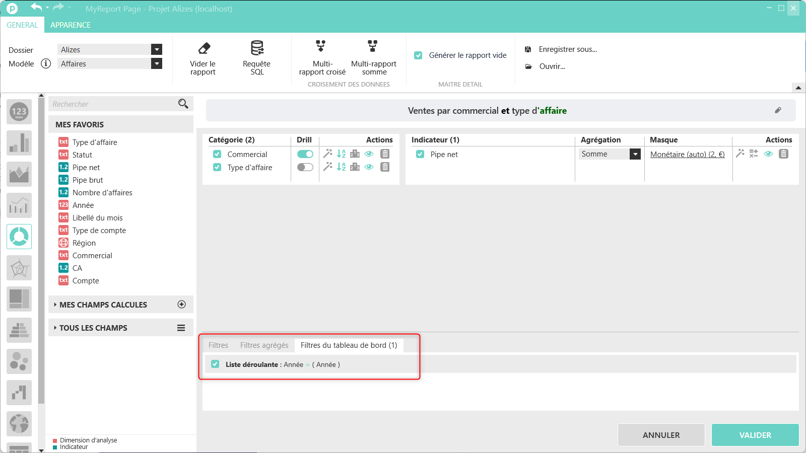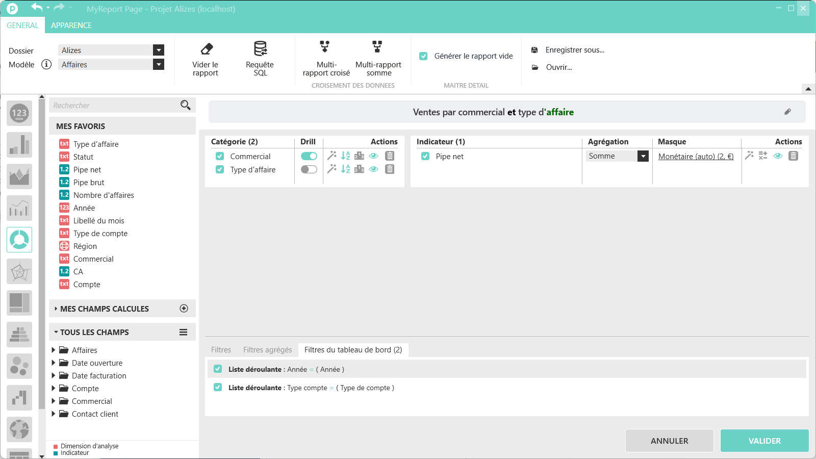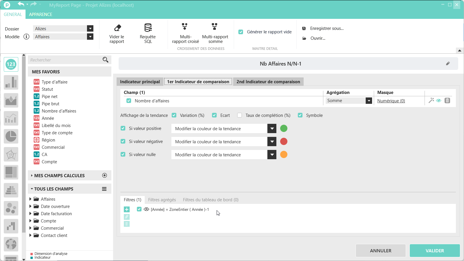 Pour obtenir ce résultat, double-cliquez sur votre KPI dans MyReport Page, l'interface de création de rapport s'ouvre.