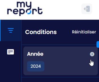 Seules les conditions utilisées par les tableaux de bord de la page en cours s'affichent dans MyReport Center.