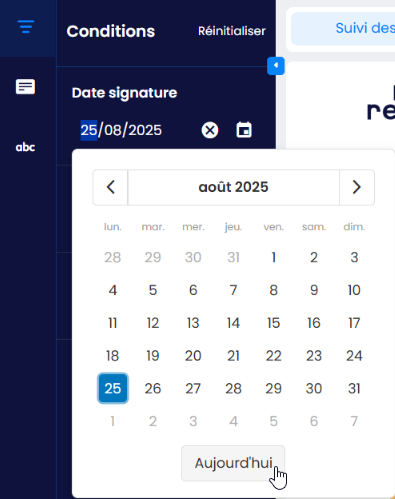 Pour ce type de condition, les utilisateurs du tableau de bord peuvent également cliquer sur Aujourd'hui pour sélectionner la date du jour !