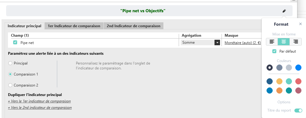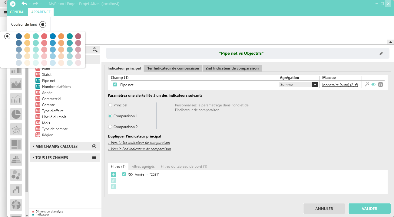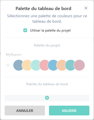 En ce qui concerne le choix de la palette du tableau de bord, par défaut, ce sera celle du projet :