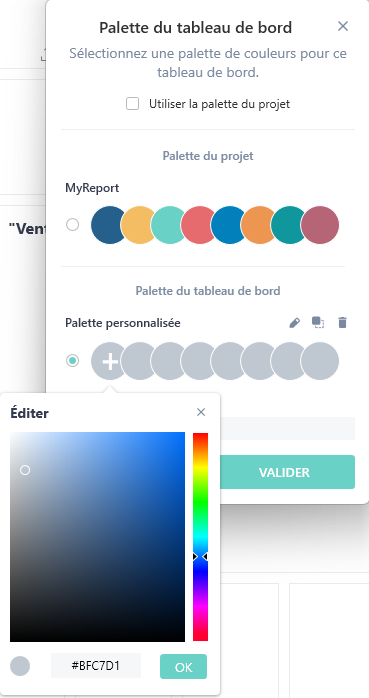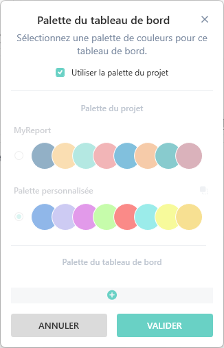 Si une palette personnalisée a été créée au niveau du projet, elle sera présente dans le choix des palettes du tableau de bord :