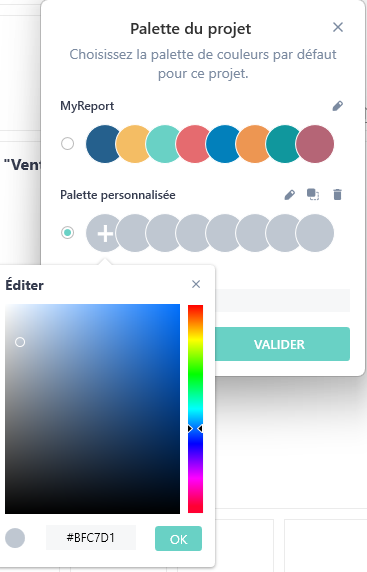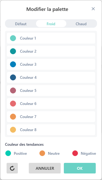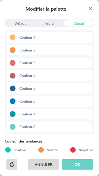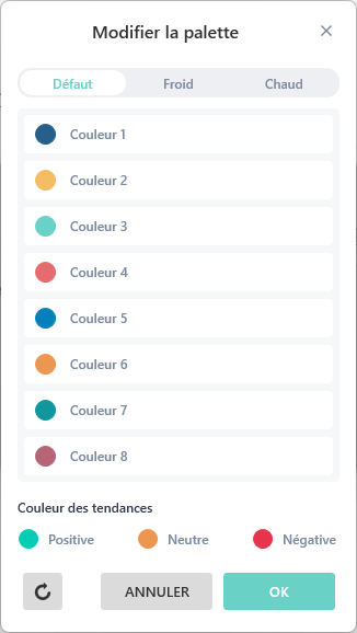 Contrairement à la palette MyReport, sur la palette personnalisée, vous pouvez modifier les couleurs, les dupliquer ou les supprimer.